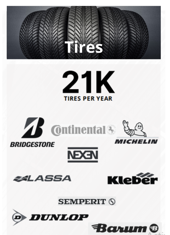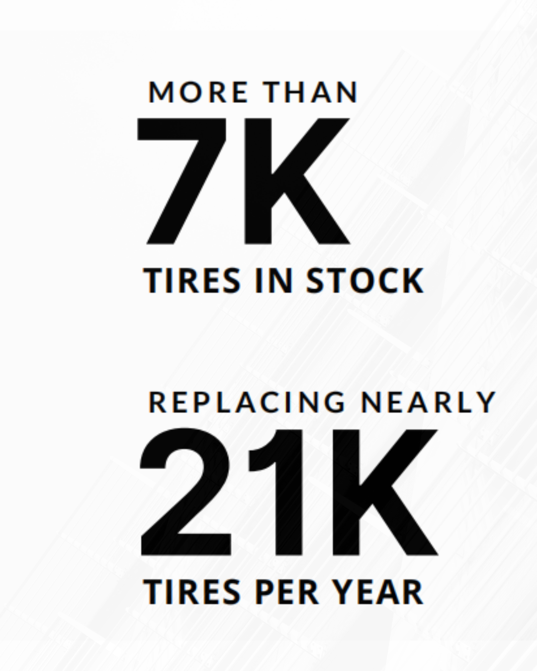 Replacing nearly 21000 tires per year, this impressive figure demonstrates our commitment to operational excellence and customer satisfaction. It showcases our ability to handle a significant volume of requests while maintaining high standards of quality and service.